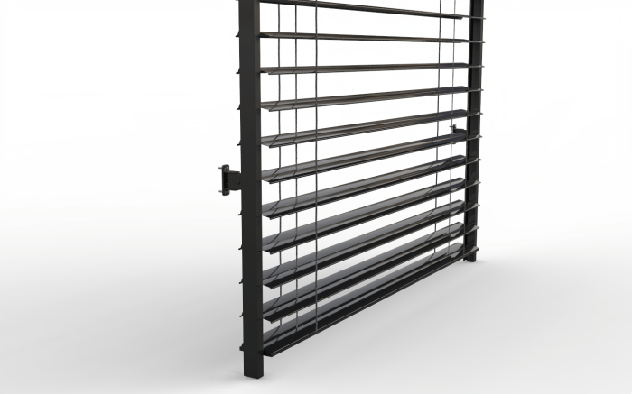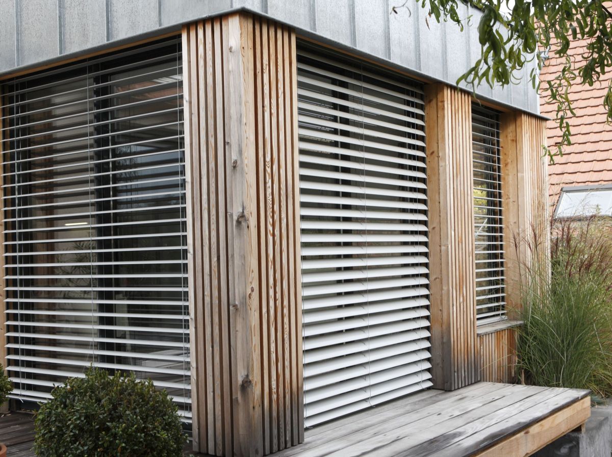 Proche du vénitien, le brise soleil orientale module les entrées de lumière en pivotant ses lames aluminium et régule l'énergie solaire; C'est l'une des meilleures protections thermiques. Privilégiez des coloris clairs réfléchissants.