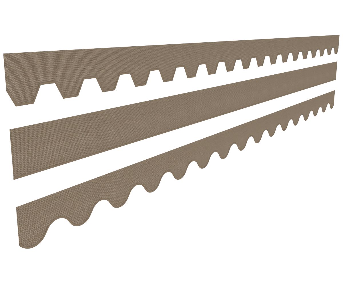 Votre lambrequin de store banne est usé, mais votre toile principale est en bon état? Vous pouvez changer seulement le volant de devant. Formes au choix: droit, grandes ou petites vagues, créneaux. .. Coloris assorti à la toile ou non, rayé, à motifs ou uni (avec une toile rayée, nous ne pouvons pas faire l'alignement des rayures). La confection est sur mesure: saisissez les dimensions, déterminez les finitions, nous nous occupons de vous livrer chez vous. Fabrication française dans le massif central.