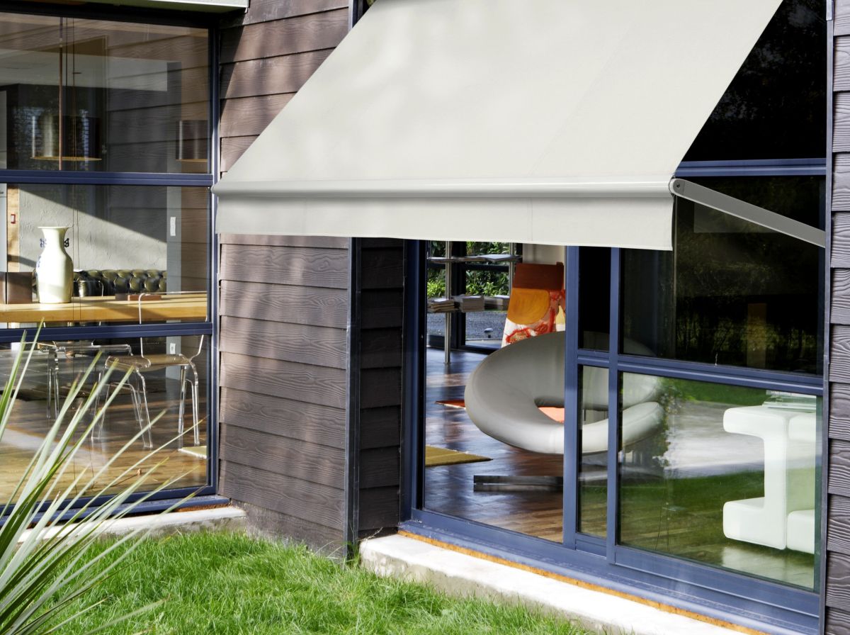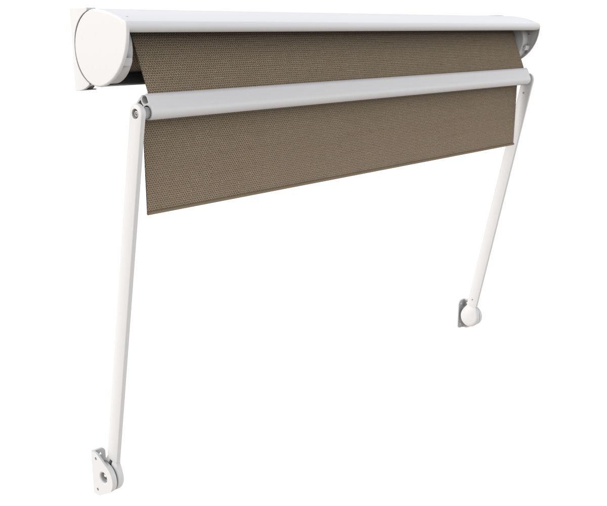 Store à projection, appelé aussi store à l'italienne. La toile s'enroule dans un coffre tout aluminium. Ce store se fixe soit entre murs (en tableau), soit de face. La toile se projette à l'aide de 2 bras en aluminium à 90°, 120° ou 180° selon votre choix. Vous arrêtez sa course là où vous le souhaitez. Large choix de toiles anti-chaleur, résistantes aux UV. Pour une protection solaire renforcée, nous vous conseillons les toiles micro-aérées SOLTIS 92, facile à nettoyer et agréable pour le confort visuel. Fabrication sur mesure, en France, garantie 5 ans.