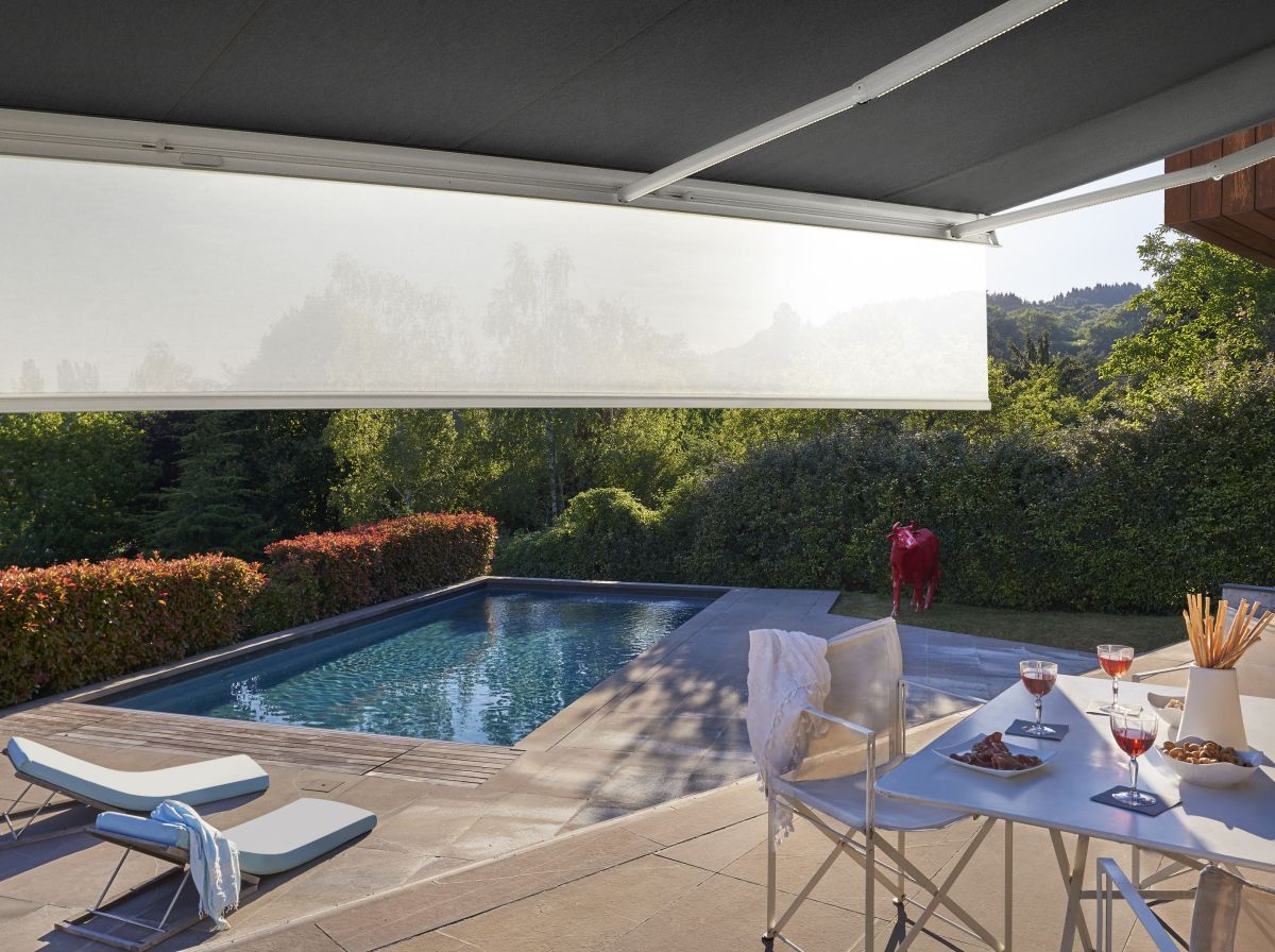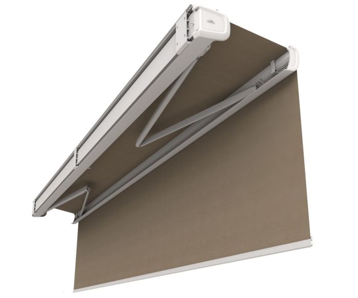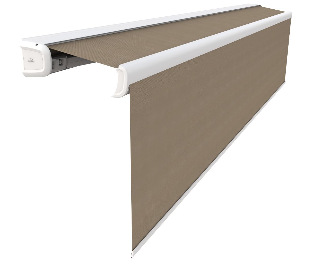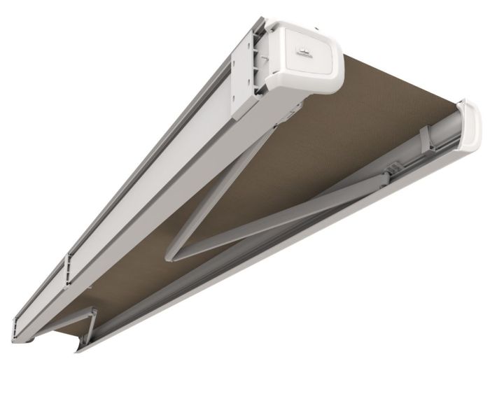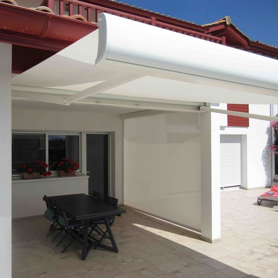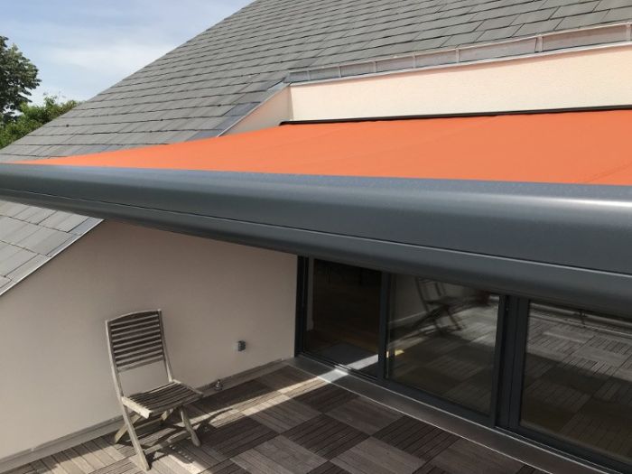 Télécommande radio, Commande secours, capteur-vent, lambrequin enroulable motorisé, éclairage Leds, impression sur lambrequin, lambrequin lumineux