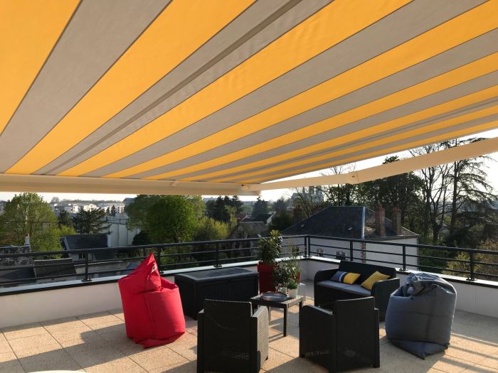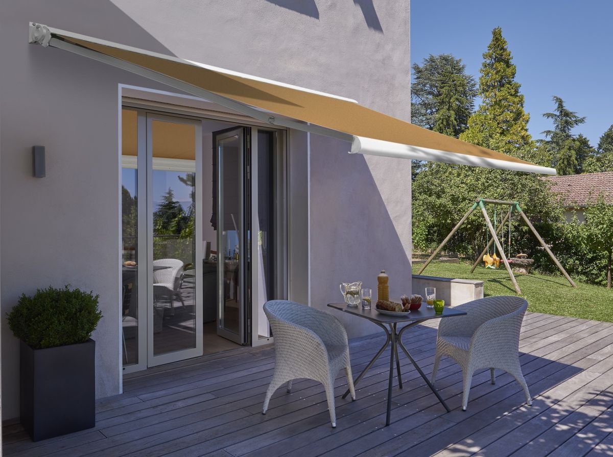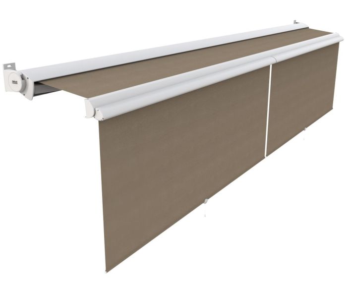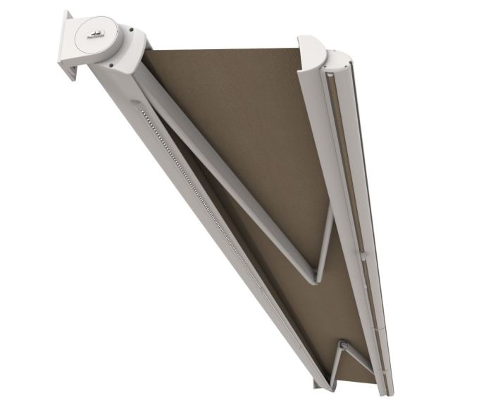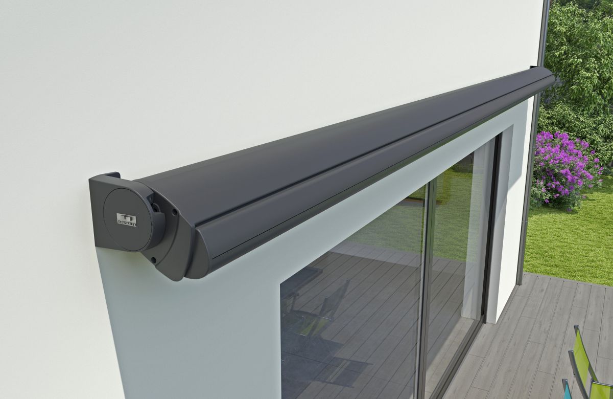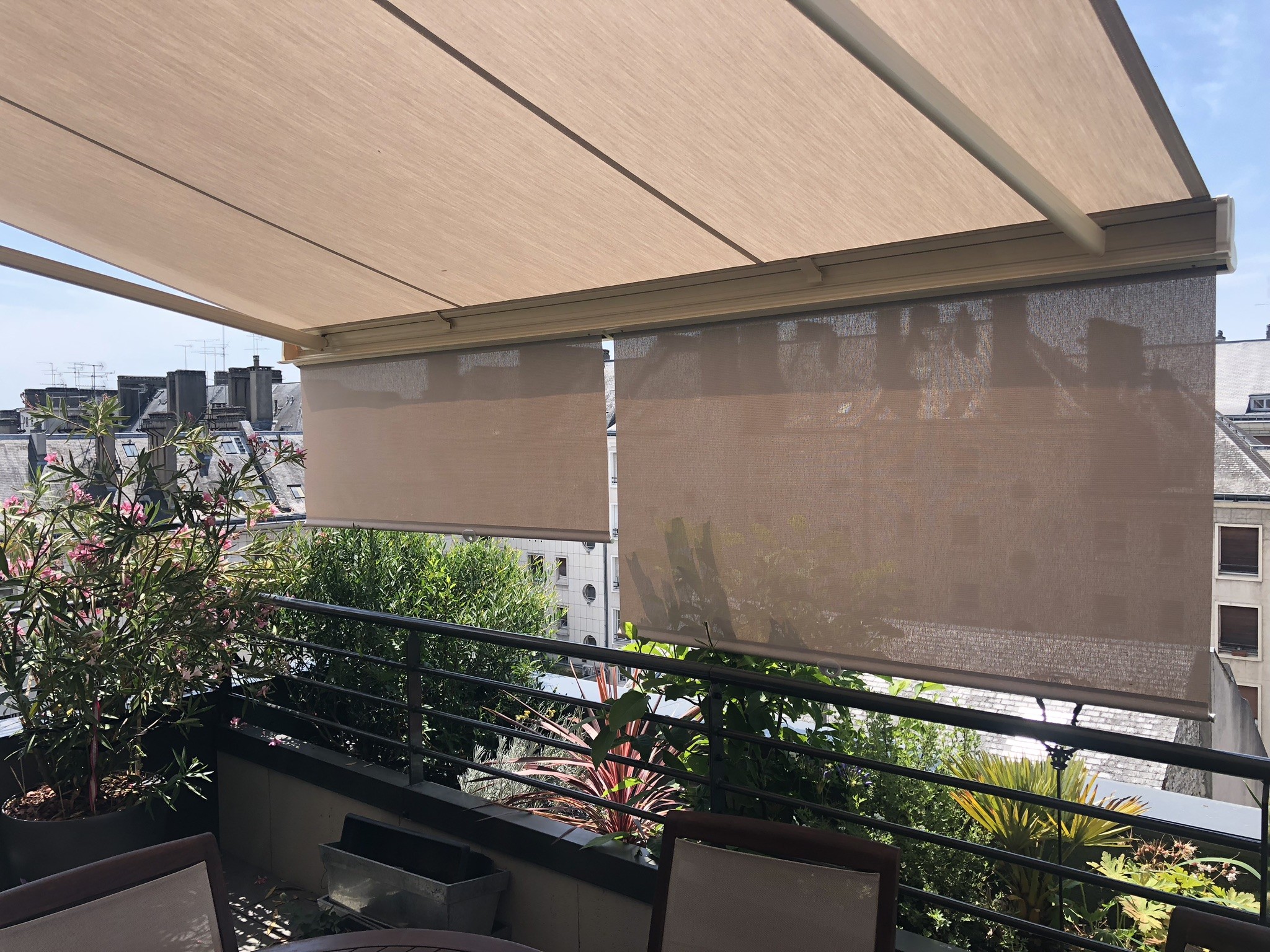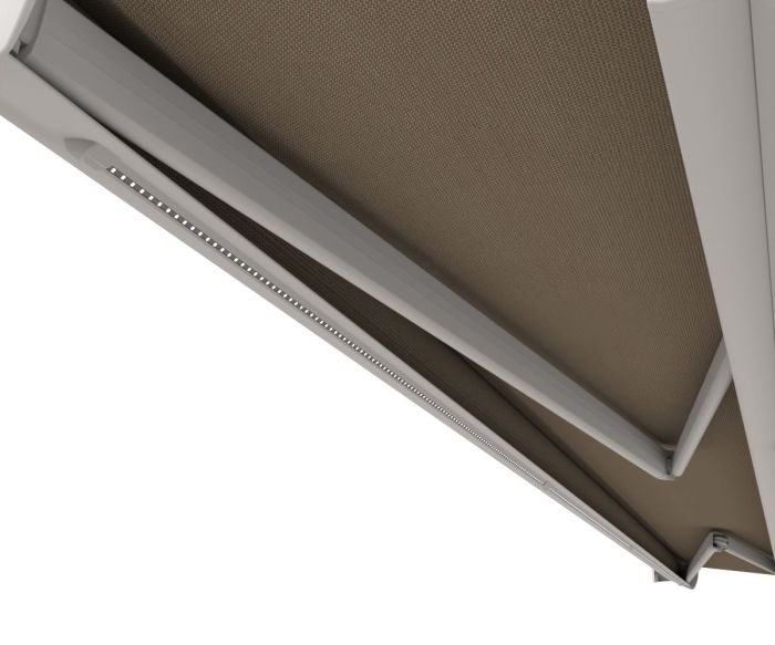 Télécommande radio, Commande secours, capteur-vent, lambrequin enroulable manuel, impression sur lambrequin, lambrequin lumineux