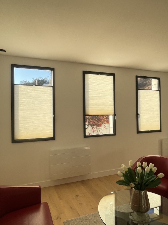 Astucieux, ce modèle de store plissé est idéal pour se protéger des regards extérieurs tout en laissant entrer la lumière. Il est équipé d'une double ouverture: une vers le haut et l'autre vers le bas. Vous le commandez à l'aide de cordons ou bien par tirage direct à la main. 91 coloris au choix. Fabriqué sur mesure. Marque Bandalux.