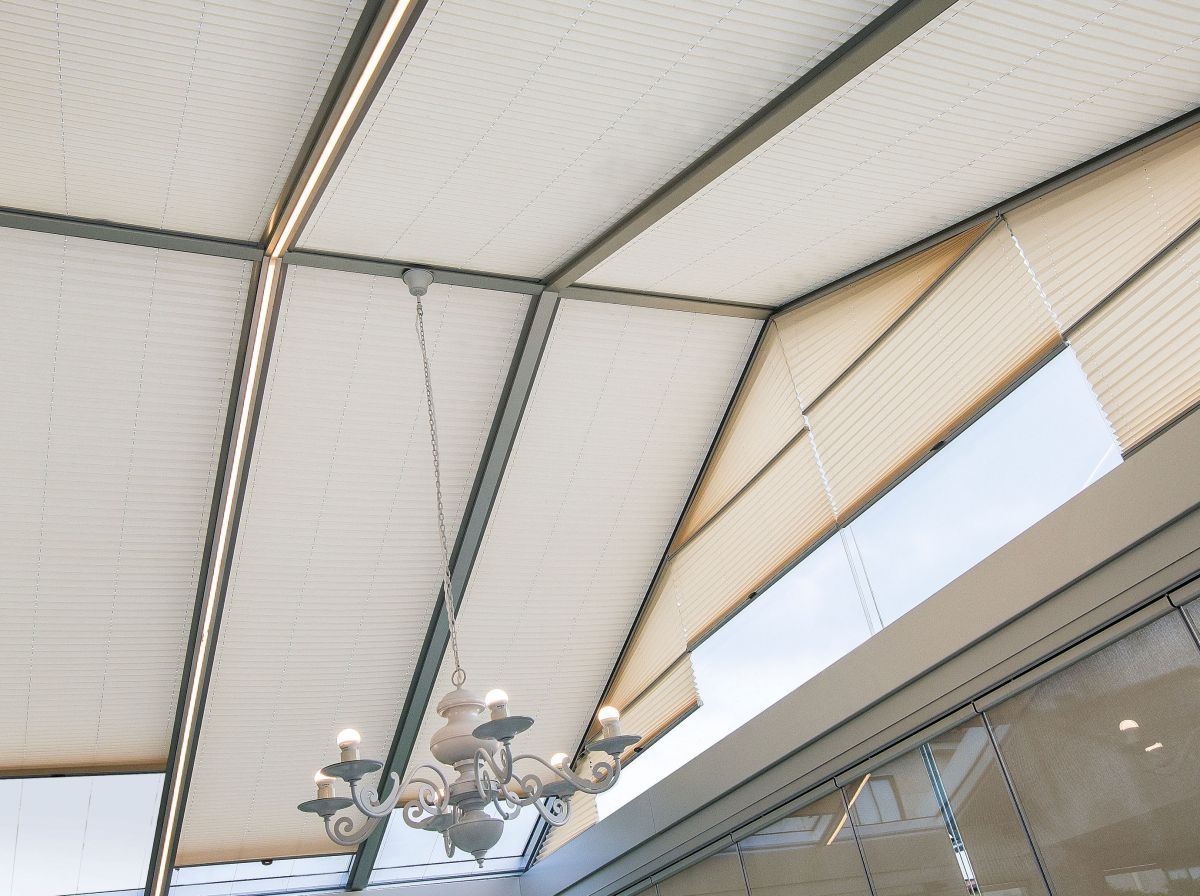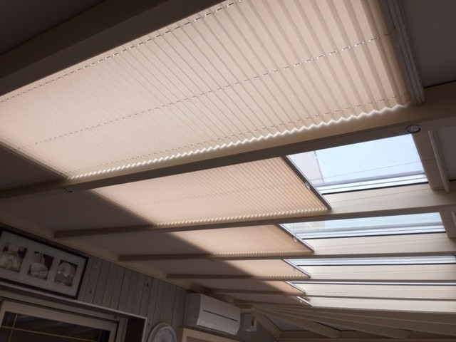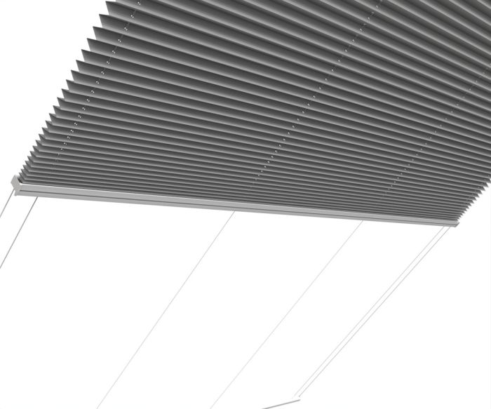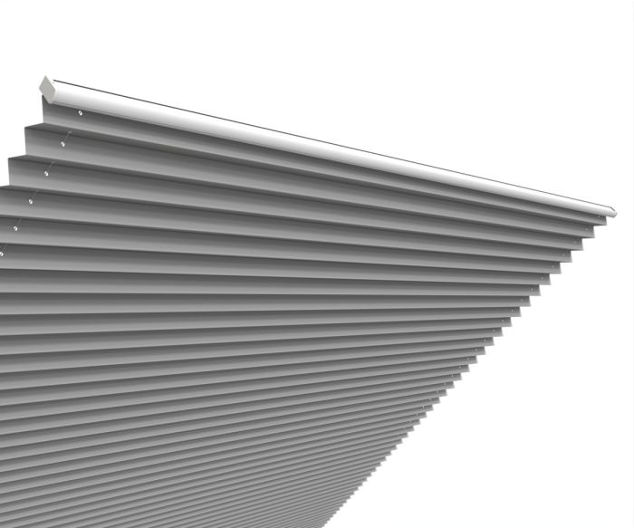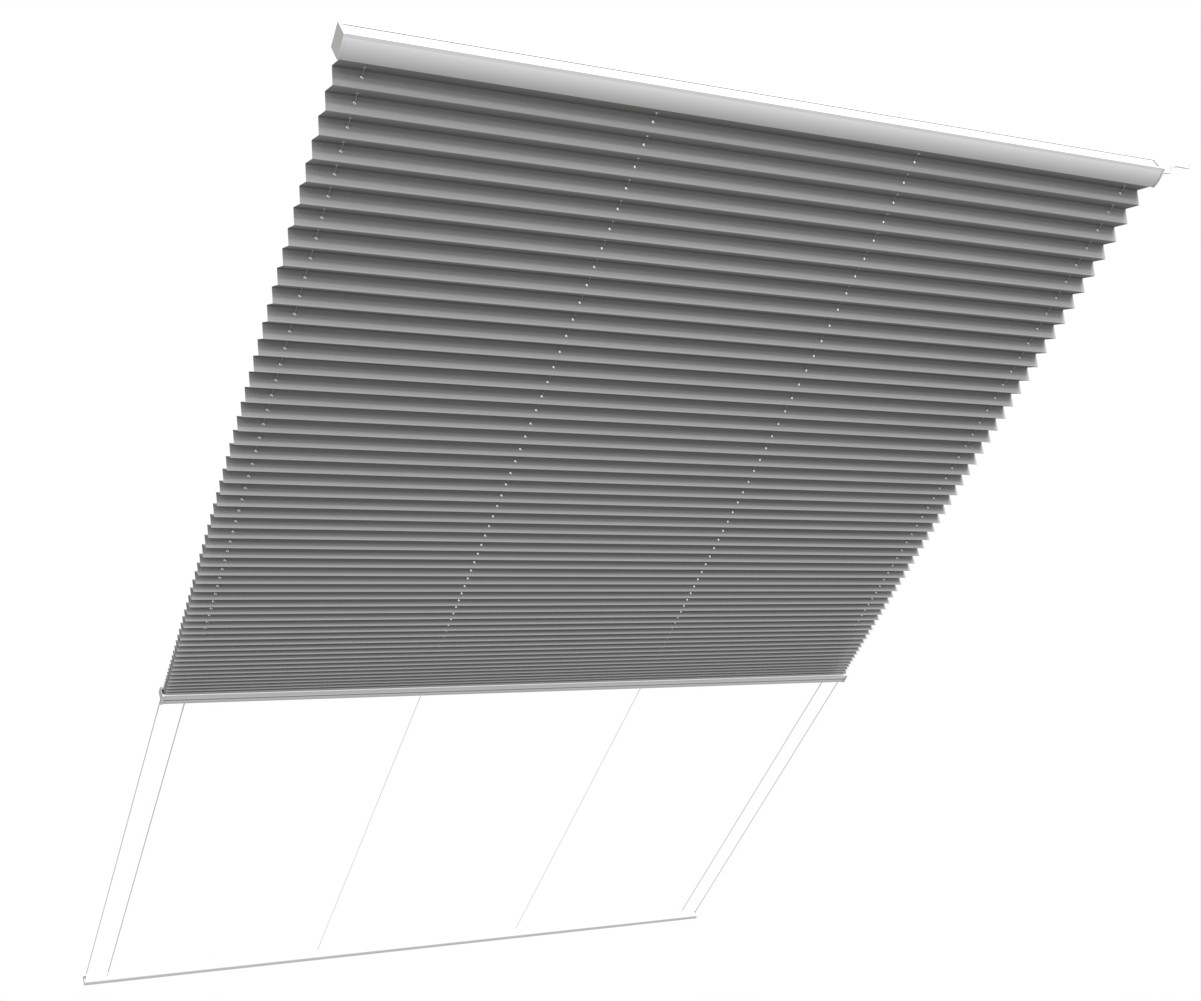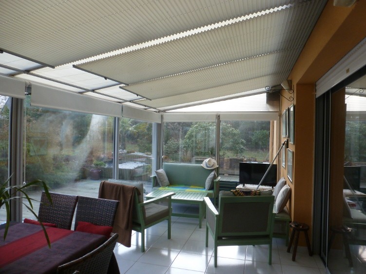 Parfait pour filtrer la lumière venant du toit, le store plissé vélum s'intègre discrètement aux toitures de verre et vérandas. A l'aide d'une perche téléscopique, vous ouvrez et fermez le store. Large choix de tissus tamisants ou transparents. Possibilité de cornière aluminium d'occultation sur demande (option). Marque Bandalux.