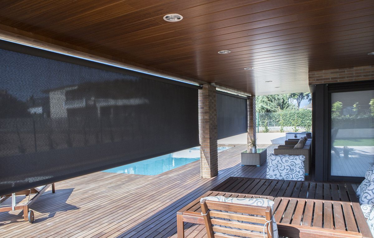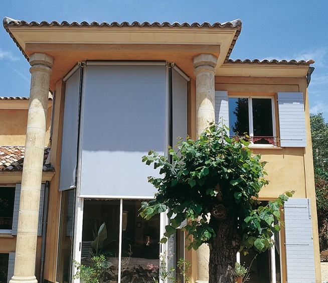 Store Vertical Extérieur pour couvrir de grandes baies vitrées. Excellente protection solaire notamment quand il est équipé des tissus Soltis micro perforés, il donne un style moderne et unique à votre maison. Par ailleurs, ces tissus Soltis sont transparents et permettent de voir vers l'extérieur. Ce store extérieur se manipule à l'aide d'une manivelle ou d'un moteur. Entrez dans la modernité et le confort avec ce store extérieur.
